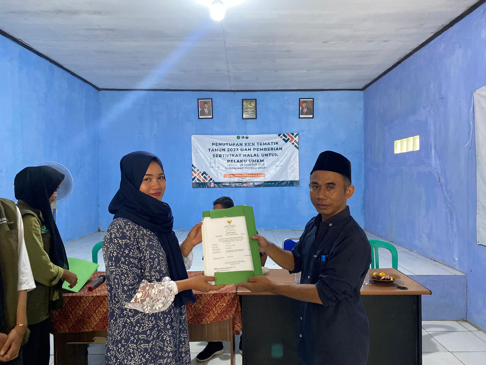 PKPH PandeglangmdashKuliah Kerja Nyata KKN Unma Banten kelompok 03 di desa Sukanagara menyerahkan sertifikat halal gratis kepada UMK di Bala
