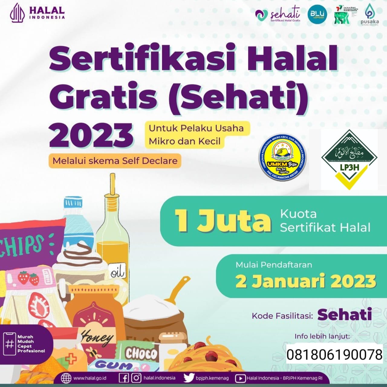 PKPH Jakarta-Mengawali tahun 2023 Badan Penyelenggara Jaminan Produk Halal BPJPH kembali membuka program Sertifikasi Halal Gratis Sehati