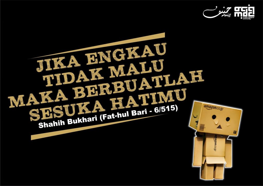 Dari Abu Mas'ud Uqbah bin Amr Al-Anshari Al-Badri ra. berkata,"Rasulullah saw. telah bersabda, "Sesungguhnya sebagaian yang masih dikenal umat manusia dari perkataan para nabi terdahulu adalah: Bila kamu tidak malu, maka berbuatlah sesuka hatimu." (HR. Bukhari).